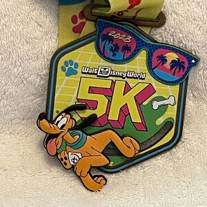 2023 WDW 5K Pluto Retro Style Run Disney Medal With Lanyard Walt Disney World
