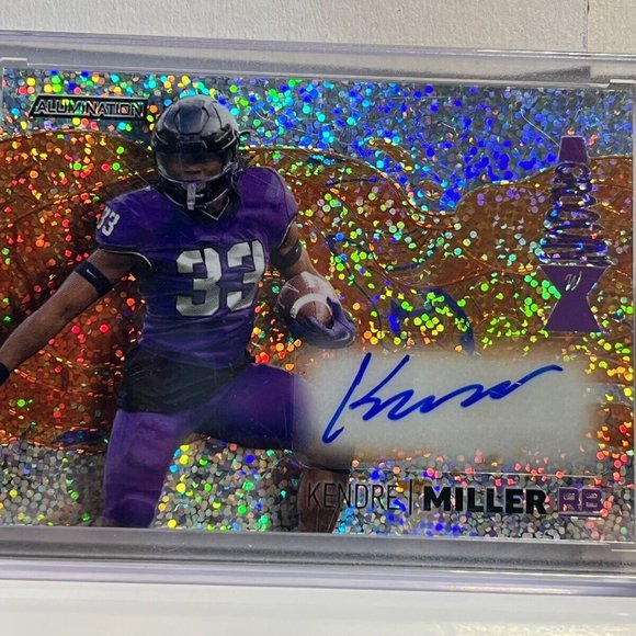 You are buying This 2023 Wild Card Alumination Kendre Miller SP Auto Rookie. This #1/5 and this trading card is a must-have for any New Orleans Saints or football fan. With a metal material and a stunning gold parallel/variety, this Wave Peacock card features a label or sticker autograph format authenticated by Leaf. This card came already in the certified holder! Get a psa 10! Plus this is the # 1 card!