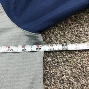 A few threads missing at back collar, part of the T missing in Dri Fit on the back. Great condition.