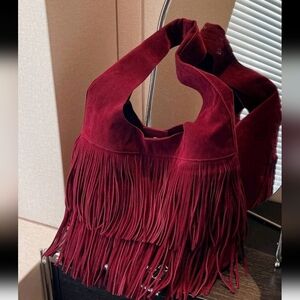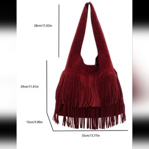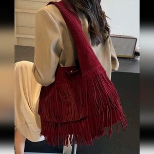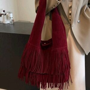 2024 Autumn Women Solid Color Fringe Large Capacity Shoulder Bag