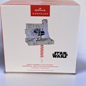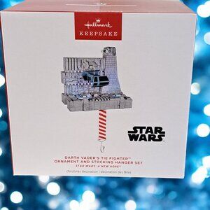 .Hallmark 2024 Darth Vaders Tie Fighter Ornament and Stocking Hanger Set. Brand New in Box.
