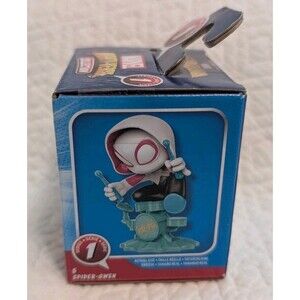 Spider-Gwen, also known as Ghost Spider, from Spidey & His Amazing Friends. Miniature figurine of her playing the drums.