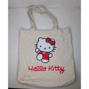 The 2024 Hello Kitty Sanrio Canvas Tote Bag is a trendy and reusable shopping shoulder bag featuring the beloved Hello Kitty character from the Sanrio franchise. Made from fabric/canvas and cotton materials, this beige-colored bag is perfect for carrying your essentials while showing off your love for the popular TV show. Its compact size makes it great for on-the-go use, and its durable construction ensures long-lasting use. Ideal for collectors or fans of Hello Kitty, this tote bag is a must-have accessory for any Hello Kitty enthusiast.