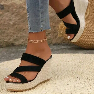 2024 New Style Cross Suede Thick Heeled Women Daily Versatile Sandals!