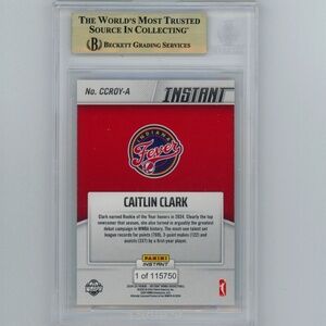 Capture a piece of basketball history with the 2024 Panini Instant #CCROY-A featuring Caitlin Clark, the Rookie of the Year. This limited edition card, with a print run of just 115750, is a treasure for any collector.