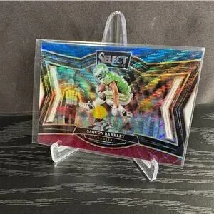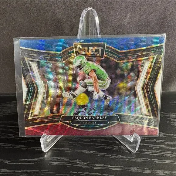 Discover this incredible and highly sought-after 2024 Panini Select Field Level Saquon Barkley Tri-Color Prizm trading card!