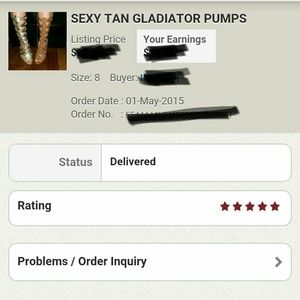 ⭐️⭐️⭐️⭐️⭐️ RATING Soft gold or tan gladiators with hook and eye polished gold detail. Back zipper 4.5 inch heel. Very cute pump and very comfortable.