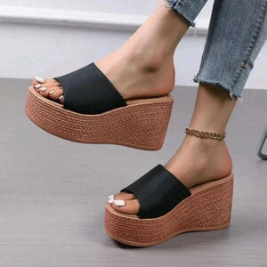 2024 Spring/Summer Women's Wedge Heel Half Slippers, Trendy For Outdoor & Beach