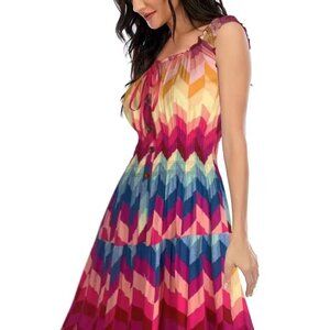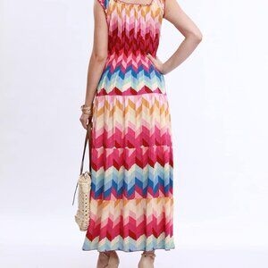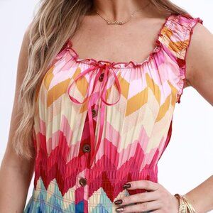 *Bohomian Maxi Dress Design - Sleeveless ruffle sleeve hole and collar with buttons decorating on the central front, A-line style with flowy hem, as a boho beach dress for your vacation and daily wearing.
