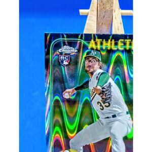 The 2024 Topps Chrome Joe Boyle #91 Ray Wave Refractor trading card is a highly sought after collectible in the sports trading card market. Produced by Topps, this card features rookie player Joe Boyle from the Oakland Athletics in Major League Baseball (MLB). The card is part of the 2024 Topps Chrome set and showcases a unique RayWave Refractor parallel/variety, making it a valuable addition to any baseball card collection.