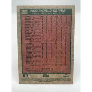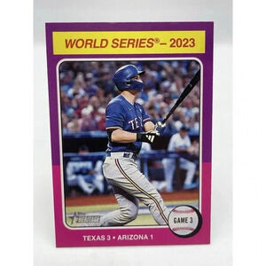The card name is "World Series 2023 Game 3" and it was manufactured by Topps in 2024. This card is a great addition to any baseball fan's collection, especially those who follow the Major League Baseball (MLB). Add it to your Sports Mem, Cards & Fan Shop or Sports Trading Cards category today.