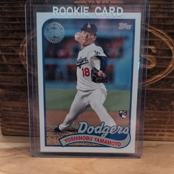 Here's an early rookie card of Los Angeles Dodgers star pitcher and 2025 World Series MVP, Yoshinobu Yamamoto.
