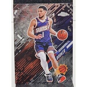 This product is a lot of 13 unique Topps Chrome basketball cards featuring players like Devin Booker, Dirk Nowitzki, and Jonathan Isaac. The cards are from the 2024-25 season and include various refractor and insert designs. Manufactured by Topps, these original English-language cards are made of card stock and are part of the National Basketball Association (NBA) league. Perfect for fans of sports trading cards, this lot offers a diverse collection for collectors to enjoy.