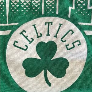 Showcase your team spirit with this vibrant green Boston Celtics tee, featuring bold white lettering. Crafted from comfortable cotton-blend material, this short sleeve shirt is perfect for any fan looking to celebrate their favorite team in style. See measurements in pictures fits a woman small!