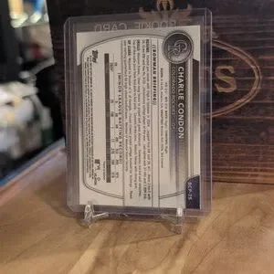 Here's a cool early prospect rookie card of Charlie Condon, superstar outfield prospect of the Colorado Rockies.