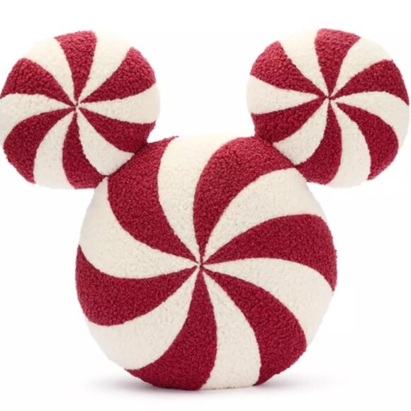 2025 Disney Parks Christmas Holiday Mickey Peppermint Swirl Throw Pillow NEW