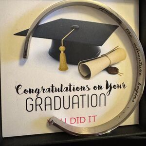 Celebrate your 2025 graduate with this meaningful engraved stainless steel cuff bracelet, presented in a graduation-themed gift box. The bracelet reads: