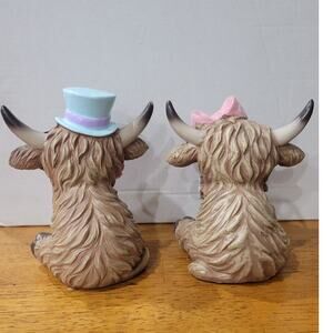 2025 Hobby Lobby Easter Spring Highland Cows Set of 2 Resin Figurines NEW