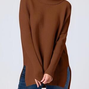 Design:Turtle cowl neck,long batwing sleeve,high low asymmetric hem,solid color,tunic top sweater,knitwear casual style,oversized sweater.