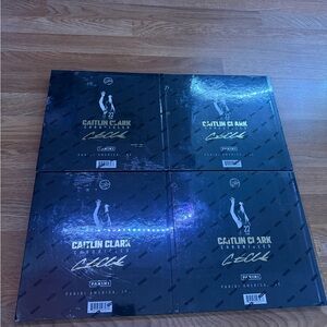 The product is a set of four factory-sealed boxes of 2025 Panini Caitlin Clark Chronicles trading cards, featuring basketball player Caitlin Clark. Exclusive to Target, these boxes contain sports trading cards made of card stock, with each box labeled with the player's autograph in English. Perfect for fans of basketball and collectors of sports trading cards, this set is a must-have for those looking to add a piece of the Super Bowl event to their collection.