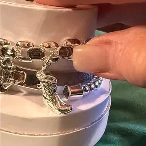 Rhinestone Rodeo. Lab created stones in silver plating. Charm is an adorable cowboy boot
