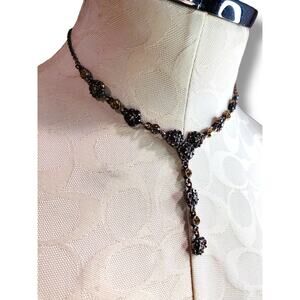 2028 Copper Color Rhinestone Antiqued Look Necklace 18" with 2" Drop