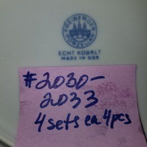 #2031 VERY RARE Collectible 4 pcs (ONLY in this listing, see my other listings for 3 more sets like this one): 1 Tea Cup and 3 Saucers Made in GDR (East Germany) Freiberger Porzellan Echt Kobalt.