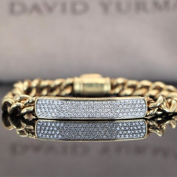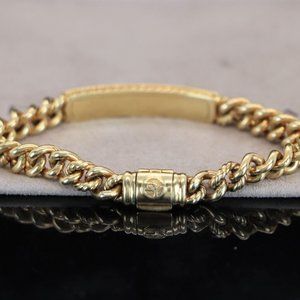 20378 David Yurman 18K Solid Yellow Gold Petite Pave Diamond ID Chain Bracelet
