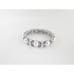 2039 NWOT Charter Club Silver Tone Faux Pearls and Crystals Bracelet Bangle