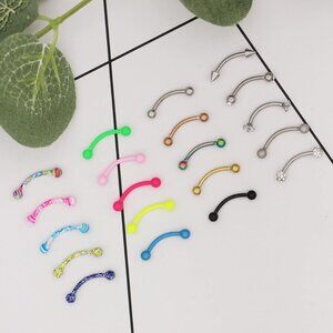 20-48Pcs Stainless Steel Eyebrow Piercing Rook Curved Barbell Kit — A colorful, trendy set for versatile body jewelry.