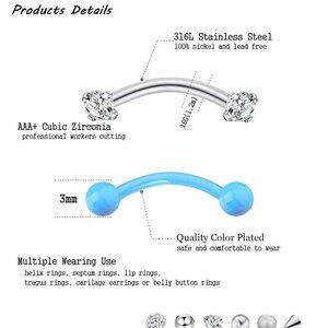 Features: Comes with 20 different style eyebrow rings plus a sleek black velvet jewelry bag—perfect for mixing and matching with your wardrobe. High-quality stainless steel construction with AAA+ CZ inlays, durable color plating that lasts, and comfortable fit for various piercings like eyebrows, tragus, helix, lips, or even belly rings. Stylish, safe, and fun to wear, whether you're dressing up or keeping it casual.