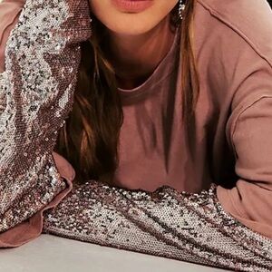 #205 NWT Free People Nellie Sequin Twofer in Pale Mauve Combo
