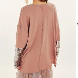 Too-cool and one-of-a-kind from the We The Free collection, this top features oversized t-shirt piecing with contrast sequin sleeves and thumbhole detailing, Slouchy, relaxed fit, Soft fabrication, scoop-neckline, dropped shoulders, contrast sequin sleeves with thumbholes, exposed seams. This top makes it easy to create a unique layered look.