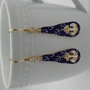 2051- Handmade Nautical Anchor Dangle Earrings NWT