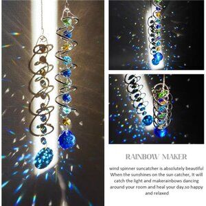 🧿Widely Use: A sparkly suncatcher ornament for indoor or outdoor use or windows.Unique Handmade; Beautiful and sparkling.Hanging decoration for Home Office Garden Window. Help to stabilize 3D wind spinners décor from wiggling on real windy environment. Can hang up in living room ,yard,balconyn,kitchen,or anywhere you desire to hang,also can along with a 3D wind spinners attach to a rotating motor(motor not include) to twirl freely
