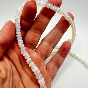 This is a 20.5" rondelle, graduated opal beaded necklace. Smallest bead measures to be about 5mm and the largest is about 7mm.
