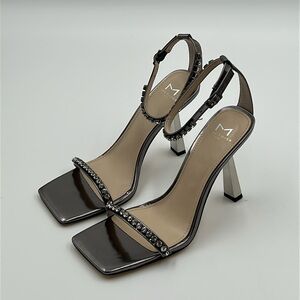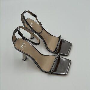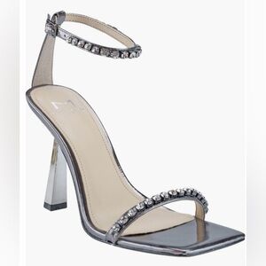 Marc Fisher, rhinestone sandals, ankle strap heels, dressy sandals, silver heels, party heels, formal shoes, wedding guest shoes, square toe sandals, NWT heels
