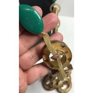 2079 CHICO'S Bold chunky Link beaded statement necklace 36" Tan / Green