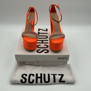 2082- Schutz Orange Platform Heels Size 7 B NWT