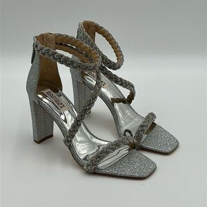 2085- Badgley Mischka Heel Sandals Silver Color Size 7.5 NWT