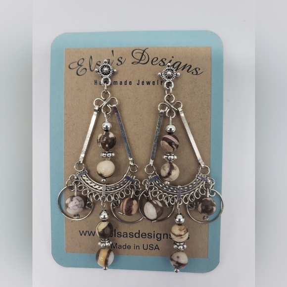 Natural Zebra Jasper Stone Handmade Earrings NWT