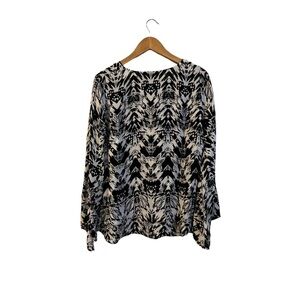 PARKER Arcus Black & White Chiffon Blouse Layered Hem Size Large Brand New