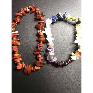 2094 lot of 2 beaded stretch tumbled stone bracelets agate, carnelian, amethyst