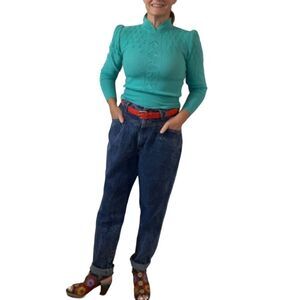 20ANS by MARIEA KIM Women’s Vintage 80s High Neck Long Sleeve Sweater Teal Small