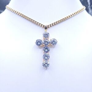 Stunning 14K Gold Finish Icy Religious Cross + 20" x 2.5mm Cuban Chain over Stainless Steel For Men & Woman.