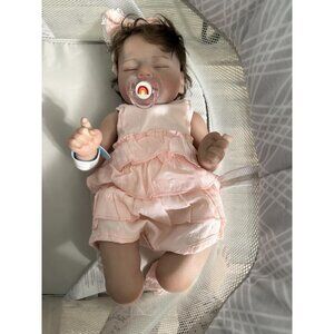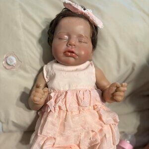 * The lifelike baby doll's handcrafted details are simply breathtaking! From the exquisitely hand-painted eyebrows to the delicate hand-implanted eyelashes and hand-rooted mohair, every feature contributes to her incredible realism. Those tiny, wrinkled fingers and toes are delicately blushed, giving her an irresistibly authentic appearance that captures the heart.