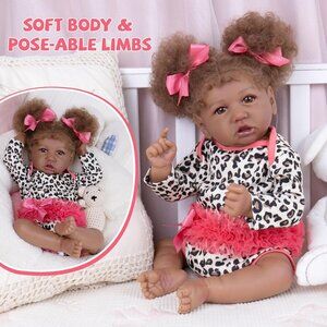 * Enjoy Her Soft Body:Dive into a world of softness! Experience the comfort of a soft embrace with our lifelike baby girl black, she come with a soft cloth body, a vinyl head and 3/4 limbs. Designed for snuggles and cuddles that feel as genuine as a real baby's warmth. The weighty baby doll feels just like a real baby when you hold her.