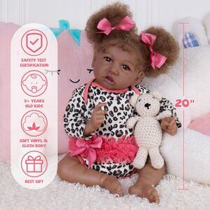 20Inch Realistic Black African American Newborn Baby Girl with a cloth Body