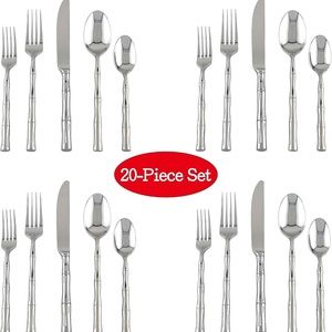 20-Piece Bamboo Shaped Flatware Set, 18/8 Stainless Steel Silverware Cutlery Set