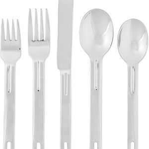 This set of flatware comes with a stand for holding each piece. It is very practical and will modernize your kitchen. Heavy duty and durable. It is long lasting and hard to bend.